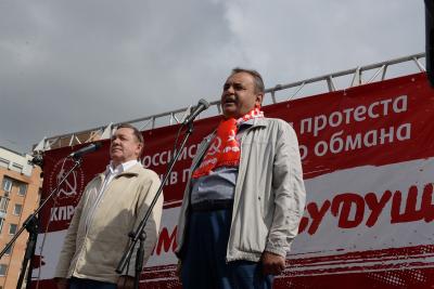 Митинг открыл заместитель председателя Законодательного собрания Новосибирской области Владимир Карпов, который передал слово второму секретарю Новосибирского областного комитета КПРФ, члену ЦК КПРФ Ренату Сулейманову: