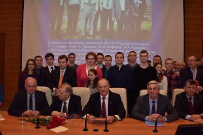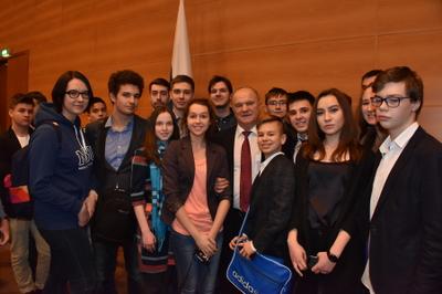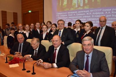 По окончании выступления нобелевского лауреата слово взял Г.А. Зюганов. Поблагодарив Ж.И. Алферова за великолепную лекцию, он рассказал о борьбе фракции КПРФ в Госдуме за развитие отечественной науки. Он сообщил об основных законодательных инициативах Компартии, нацеленных на поддержку науки, образования и здравоохранения, а также о возможных источниках пополнения бюджета в целях увеличения расходов на социальные программы. Кроме того, Геннадий Андреевич осудил тех, кто выступает за уничтожение некрополя у кремлевской стены, поскольку там находятся захоронения не только советских и партийных деятелей, но и выдающихся ученых, сделавших огромный вклад в развитие отечественной науки, а также лежат останки генералов и маршалов, спасших страну от немецко-фашистских захватчиков.