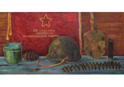 Особое место в творчестве занимает тема Великой Отечественной войны. С участием художников города Барнаула ежегодно в канун дня Великой Победы проводиться краевая художественная выставка под названием «Краски Мая». До сих пор наши российские либералы никак не могут остепениться в деле извращения истории Великой Отечественной войны. Мой отец погиб в Сталинградской битве. Мой долг памяти обязывает принимать участие в каждой такой выставке. Вторая весьма существенная причина, заключается в том, что в годы войны И.В. Сталин организовал широкую сеть детских домов по всей стране и собрал в них всех сирот. В их числе был и я, оказавшийся в Родинском детском доме.