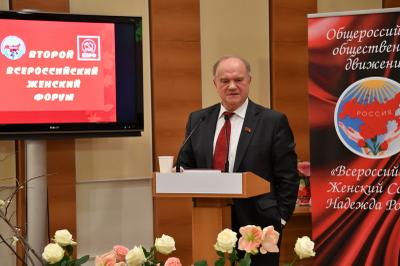 1 марта в Малом зале Государственной Думы ФС РФ проводился Всероссийский Женский Форум, посвященный Международному Женскому дню 8 марта. Мероприятие было посвящено теме: «Государственная защита и поддержка женщин, семьи и детей». На форуме выступил Председатель ЦК КПРФ Г.А. Зюганов.