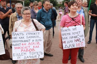 Участники митинга потребовали распустить Государственную думу, в которой накануне прошли общественные слушания по законопроекту, и призвали жителей региона на выборах 9 сентября прийти на избирательные участки и выразить недоверие «Единой России».