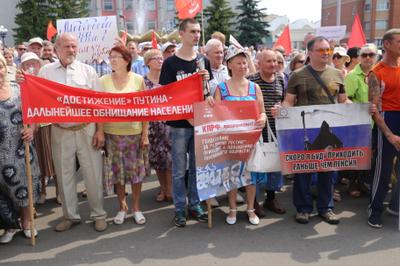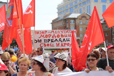 Несмотря на традиционное давление властей (кто придет на митинг к коммунистам – увольняйся, или – исключим из института и т.п.), вброс в СМИ информации об отказе в проведении референдума, 40-градусную жару, в столице Мордовии – Саранске на митинг протеста против повышения пенсионного возраста собралось порядка 3 тысяч человек. Могло быть и больше, но власти после долгих проволочек для проведения протестного мероприятия выделили Театральную площадь, максимальная вместимость которой составляет всего 900 человек.