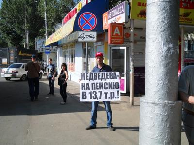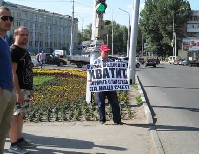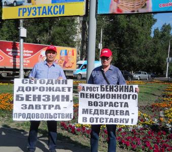 Плакаты пикетчиков: "Путин, Медведев! Хватит кормить олигархов за наш счёт!", "За рост бензина и пенсионного возраста, Медведева – в отставку!", "Медведева – на пенсию в 13,7 т.руб.!", "Рост пенсионного возраста – сокращение рабочих мест и срока жизни!", "Рост тарифов – "подарок" "еддроссов" избирателям!","В богатой стране нищий народ – позор власти!","Так и будут обдирать если будем мы молчать!", "Сегодня дорожает бензин, завтра – продовольствие!" и др. нашли живой отклик у горожан.