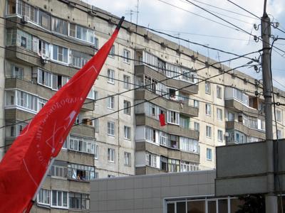 На нескольких балконах многоэтажек, мимо которых проходило шествие, появились советские красные флаги. Простые горожане остаются преданными своей истории и хранят ее символы – спасибо этим патриотам Отечества.