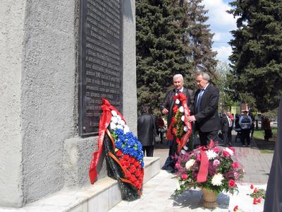 От имени коммунистов Тамбовщины первый секретарь Тамбовского ОК КПРФ А.И. Жидков и руководитель депутатской группы КПРФ в Тамбовской областной Думе В.С. Полежаев возложили венки павшим воинам к мемориалу «Вечный огонь» и памятнику танковой колонне «Тамбовских колхозник».