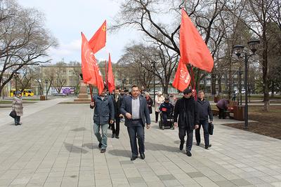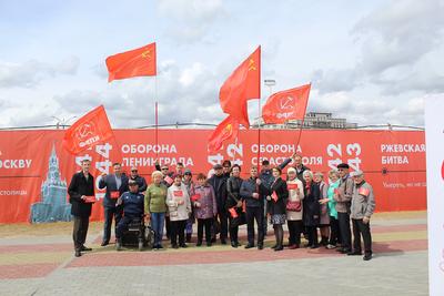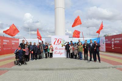 К полудню в сквере, прилегающем к памятнику видному революционеру Федору Мухину, собралась группа активистов КПРФ, Ленинского Комсомола и сторонников левых идей. Они раздавали прохожим красные флажки — копии Знамени Победы, рассказывали жителям города об исторических символах Великой Победы. Затем, построившись в колонну и соблюдая социальную дистанцию, участники патриотической акции направились к 75-метровому флагштоку.