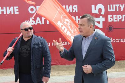 — Красное Знамя Победы – это святыня нашего народа. Этот стяг обагрён кровью наших дедов и отцов. Вот почему сегодня всех нас переполняет радость за то, что впервые за 30 лет с момента развала Советского Союза Красное Знамя поднято над нашей Амурской землей. Ещё десять лет назад об этом нельзя было подумать. Единороссы предлагали в Государственной Думе утвердить в качестве Знамени Победы историческую фальшивку. Но мы, коммунисты вместе с патриотической общественностью смогли тогда отстоять реликвию нашего народа. Сегодня, благодаря нашей принципиальной позиции, Знамя Победы гордо реет над Амуром. И мы приложим все усилия, чтобы это Знамя было водружено над Кремлём, — подчеркнул Роман Кобызов.