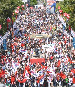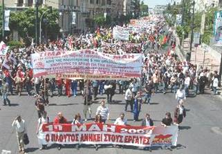 Рабочий Первомай в Греции Первомайские митинги и демонстрации в 70 городах страны. Крупная демонстрация в Афинах у стен представительства ЕС и посольства США