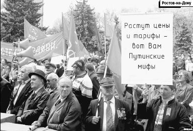Сейчас политика властей вроде бы изменилась. Поняв, что так просто народ замолчать не заставишь, партия власти попыталась взять процесс в собственные руки. И вот на площади российских городов стали выходить разукрашенные флагами колонны "единороссов" и шмаковских профсоюзов. Только не красными, как это традиционно происходит во всем мире, а голубыми и желтыми, ибо таков цвет их знамен и транспарантов.