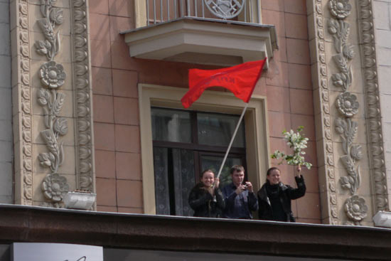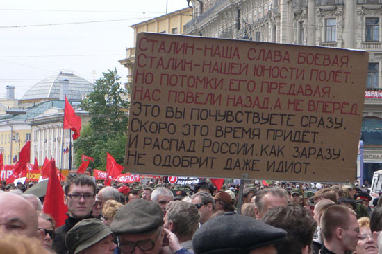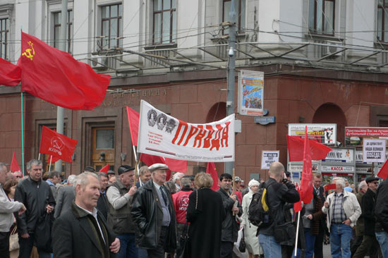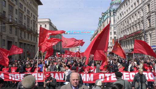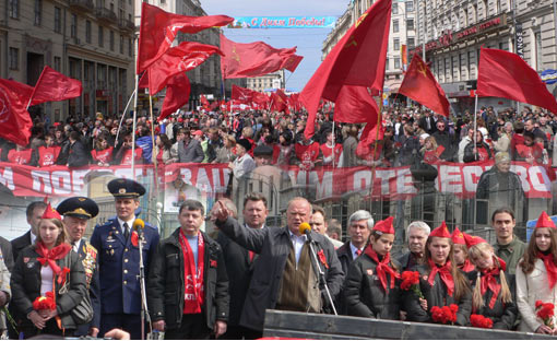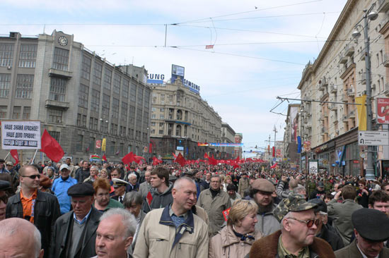 В 63-ю годовщину Великой Победы в Москве состоялась пятидесятитысячная манифестация: С нами идеалы социализма, с нами Победа!