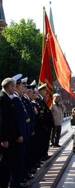 Под барабанную дробь раздалась команда: "Внести Знамя, равнение на Знамя!" И торжественным чётким шагом пионерского звена знаменосцев Красное Знамя двинулось вдоль шеренг. Рапорт пионерской дружины принимали: руководитель Коммунистической Партии Российской Федерации товарищ Зюганов, товарищи из Центрального Комитета КПРФ, ветераны Великой Отечественной Войны, в военной форме, при орденах и медалях, стоящие в строю под Знаменем Победы возле Вечного Огня.