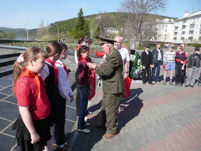 После церемония принятия в пионеры состоялась еще одна. Дело в том, что к Дню Победы зеленогорской организацией КПРФ был объявлен конкурс на лучшее школьное сочинение о ветеранах войны «Пусть помнит мир спасенный». Десятки детский сочинений поступили на суд жюри конкурса, и вот из множества трогательных детских работ были выбраны лучшие. По итогам конкурса Зеленогорский городской комитет Коммунистической партии Российской Федерации наградил победителей конкурса благодарственными письмами и памятными подарками.