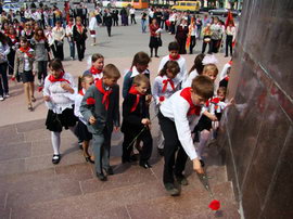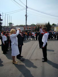 Перед собравшимися выступили ветераны пионерского движения, руководители и активисты партийной организации: секретарь областного комитета КПРФ И.Н. Хренов; поэтесса, коммунист Советского районного отделения партии Л.А. Симакова; руководитель Рязанского отделения РУСО, кандидат наук И.Д. Шутов; второй секретарь Октябрьского РК КПРФ Кривцова Л.М. Вновь вступившим – а это более 40 ребят и девчонок из Рязани и области – в торжественной обстановке были повязаны пионерские галстуки. А затем состоялось возложение цветов к постаменту В.И. Ленина.