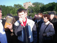 В акции протеста приняли участие около 150 жителей. Поддержать митингующих приехали депутат МГД от фракции КПРФ, председатель КЗПГ С.В.Никитин, депутат МГД от фракции Яблоко С.С.Митрохин, первый секретарь Восточного Окружного Комитета КПРФ В.Ф.Монахов, сопредседатель КЗПГ С.В.Селиванкин, руководитель инициативной группы жителей района Калошино Е.Л.Раюшкина.