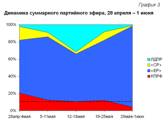 В течение мая структура партийного телеэфира менялась следующим образом (График 3):