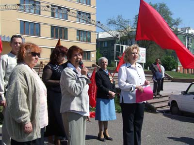 Секретарь Ленинского отделения КПРФ Алла Авдиенко открывает праздник перед ДК 1 Мая