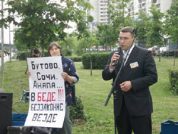 Вечером вторника у станции метро "Скобелевская" (район Южное Бутово) состоялся митинг собственников домовладений посёлка Бутово, незаконно изгоняемых московскими властями со своей земли, а также представителей инициативных групп, протестующих против незаконной “точечной” застройки. Митинг проводился в поддержку антикоррупционной политики президента Российской Федерации. Акция была организована Комитетом защиты прав граждан Бутово, в ней приняли участие около 150 человек.