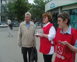 На пикетах раздавался агитационный материал – газеты «Правда», «Советская Россия», а также листовки, выпущенные Южно-Сахалинским городским отделением КПРФ «Правовые баррикады партии – Начало слушаний по иску КПРФ».