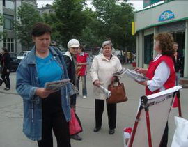 Пикеты проводились в многолюдных местах в центре города. Яркая атрибутика КПРФ – красные флаги, накидки, плакаты и лозунги представляли коммунистов и привлекали народ, проходивший мимо.