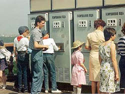 В Москве, на территории Всероссийского выставочного центра (ВВЦ), появились автоматы по продаже газированной воды с сиропом и без него, аналогичные тем, которые были распространены во времена Советского Союза, сообщаетсо ссылкой на пресс-службу ВВЦ.