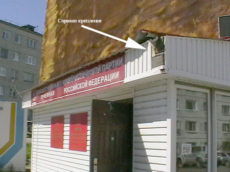 В ночь с 13 на 14 июля 2008 г. неизвестными лицами были выломаны два флага с символикой КПРФ, установленные в труднодоступном месте на торцевом фасаде дома по адресу: г. Магадан. ул. Дзержинского, 14, над входом в Магаданский обком и горком КПРФ и общественную приемную Магаданского областного отделения КПРФ.