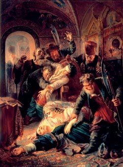 Убийство Федора Годунова и его матери, царицы Марии Григорьевны, 20 июня 1605-го. (Картина Константина Маковского «Убиение царя Федора») |