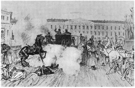 Сцена убийства Павла I. Гравюра. Император Павел I отказался отречься от престола. «После перечисления всего зла, нанесенного России, граф Зубов ударил Павла золотой табакеркой в висок, а шарфом Беннигсена его задушили» |