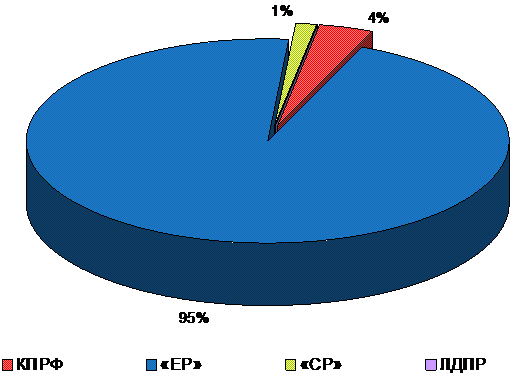Что касается синхрона (прямой речи) партийцев, то его структура аналогична: единороссам было предоставлено 95% суммарного времени, либерал-демократам – 0%, справороссам – 1%. Коммунистам досталось 36 секунд, или 4%, что в 26 раз меньше чем представителям «ЕР» (График 2).