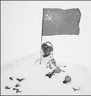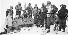 «Правда»: Коммунисты во главе с секретарем ЦК КПРФ В.Ф.Рашкиным покорили Эльбрус, где водрузили флаг СССР и вымпел «Правды»