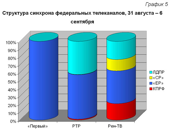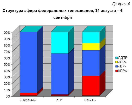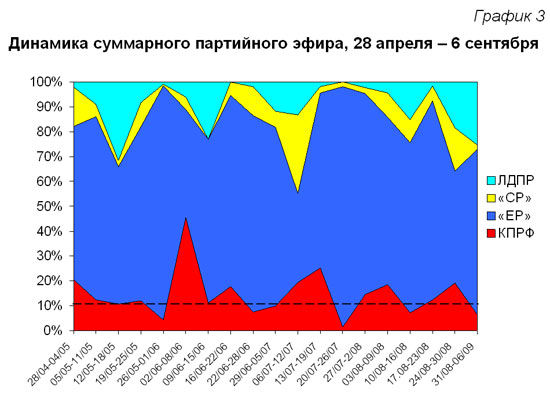 В течение мая-сентября структура партийного телеэфира менялась следующим образом (График 3):