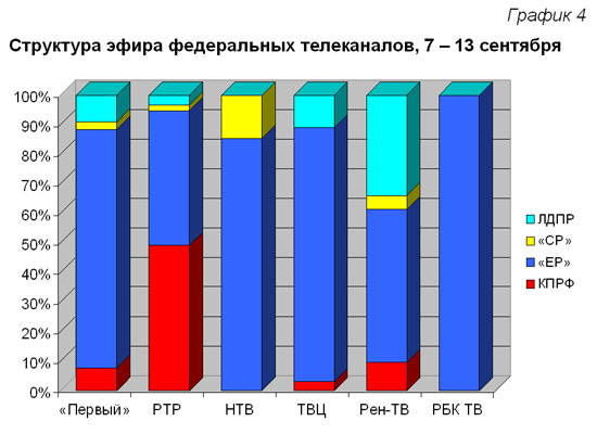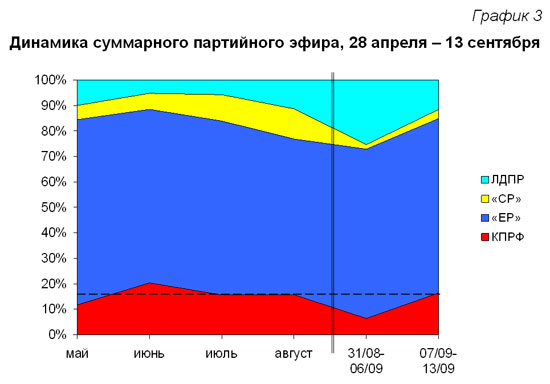 В течение мая-сентября структура партийного телеэфира менялась следующим образом (График 3):