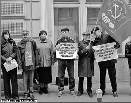 В четверг утром в Москве, на улице Ильинка, перед зданием Министерства финансов, по инициативе КПРФ прошел пикет против этих планов правительства. "Финансовые резервы — на развитие экономики и улучшение жизни народа!", "Остановить "накачивание" фондового рынка бюджетными средствами!", "Требуем преобразований в пенсионной и финансовых сферах!", "Бюджет — народу, а не биржевым игрокам!" Плакаты с такими требованиями и знамена КПРФ привлекали внимание работников министерства и прохожих.