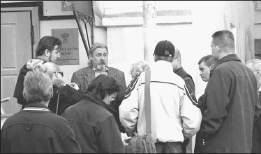 – Плотников, – делился своими наблюдениями Ю.Савенок, – сознательно разваливал партию все 4 года своего правления. "Убрал плюрализм мнений, гласность, неугодных изгнал". Савенок написал заявление о несогласии с политикой, проводимой Плотниковым. Он не представляет, как можно объединяться с "Единой Россией", которая только вредила селу. "Кто сейчас не дает "единороссам" развивать сельское хозяйство? – допытывался Савенок. – У них конституционное большинство в Госдуме, председатель правительства возглавляет их партию, есть деньги и власть, любой закон могут принять, чтобы поставить на ноги село. Почему бы не влить в аграрный сектор хотя бы толику тех средств, которые сейчас выкинули на фондовый рынок? Деньги отправили непонятно куда. А село, нечерноземка – все лежит...". Савенка слушали с вниманием, соглашались. К собранию присоединилась небольшая группа протестующих, и народ решил обратиться напрямую к членам ЦС, засевшим в здании. Приблизились к подъезду, но милиция тут же активизировалась, получив, очевидно, распоряжение не подпускать недовольных к офису. "Что вы нас не пускаете? Пусть выйдут плотниковские чиновники, мы им зачитаем наше обращение", – убеждали милиционеров собравшиеся. Но те уперлись... Тут появилась упитанная блондинка и направилась к дверям под зелено-красным флагом АПР. Нажала переговорное устройство: "Не бойся, это я, открывай". Все догадались, что она из тех, кто сидит на окладе Плотникова. Завязалась перепалка. Блондинка в выражениях не стеснялась и вскоре прошмыгнула в приоткрывшуюся дверь. Тогда один из молодых участников акции приковал себя наручником к решетке, удерживающей навес над входом в ЦС АПР. Кто-то разбросал листовки с фото Плотникова, держащего в руках гробик, символизирующий похороны АПР. Милиция заволновалась, подскочили журналисты. Пожилой капитан начал оттаскивать парня от решетки, требовал снять наручник. Парень пояснил, что у него нет иной возможности вынудить представителей плотниковской команды выйти и объясниться с собравшимися членами АПР. Милиционер недоверчиво спросил: "Вы тоже член Аграрной партии?". Молодой человек показал удостоверение: Трубников Евгений Анатольевич, 1979 года рождения, и повторил: "Хочу встретиться с руководством партии и сказать ему, что не согласен с объединением с "Единой Россией".