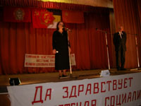 Перед зрителями выступил руководитель фракции КПРФ в Мосгордуме, 2-й секретарь МГК КПРФ В.И.Лакеев. В эти дни мы отмечаем 15-ю годовщину октябрьских событий 1993 года, хотя слово «отмечаем» не очень подходит, потому что события закончились трагически. Люди, которые встали на защиту Конституции в противовес ельцинскому военному перевороту, сделали это осознанно, а до этого получили закалку в ряде массовых акций, включая первомайскую демонстрацию 1993 года, снос палаточного городка в Останкино, избиение людей ОМОНом у площади Рижского вокзала. Память о таких людях, отдавших свои жизни, безусловно, вечна и дело чести всех патриотов поддерживать её. После осуществлённого переворота Ельцин демонтировал систему советов, стал ускорять процессы приватизации, в России укрепился капитализм.