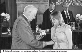Пётр Васильевич вручает партийные билеты молодым коммунистам |