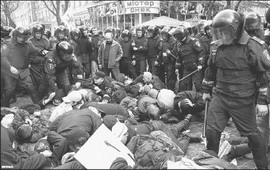 Как сообщило for-ua.com, националисты применили по отношению к милиционерам слезоточивый газ, в результате чего среди последних есть пострадавшие. В Центре общественных связей Главного управления МВД Украины в г. Киеве сообщили, что госпитализированы 22 стража порядка. В частности, 8 – с телесными повреждениями, другие – с отравлением неизвестным газом. При этом милиция задержала более 100 провокаторов, которые активно оказывали сопротивление правоохранительным органам. Милиция также изъяла у задержанных палки и щиты, с которыми они пытались нападать на правоохранителей. В главке не исключили, что среди задержанных есть участники националистической организации "Братство" и других организаций. Милиция составит протокол о невыполнении требований правоохранительных органов. Протокол об административных нарушениях будет направлен в суд, который определит наказание. В милиции также отметили, что произошедшие события зафиксированы на видеокамеру, а также добавили, что если в действиях задержанных будут выявлены признаки уголовного нарушения, то будет возбуждено уголовное дело.