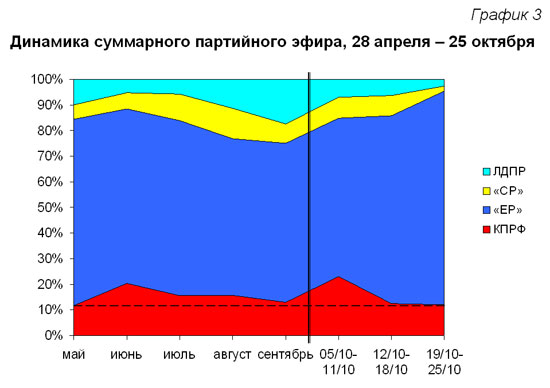 В течение мая-октября структура партийного телеэфира менялась следующим образом (График 3):