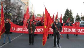 В Белгороде по традиции, не прерывавшейся с советских времен, горком КПРФ организовал демонстрацию. Так повелось, что для её участников этот день был прежде всего праздником. Колонны единомышленников, красные знамёна, боевые мелодии революции и эпохи созидания, - всё это создаёт атмосферу, которая позволяет людям почувствовать себя хоть на полтора-два часа в советском прошлом(не случайно, на место сбора многие приходят задолго до времени начала демонстрации).