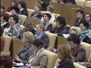 Всероссийский съезд женщин, (13:54:27) | ![]() Ну, а как считает депутат Алевтина Апарина, сегодня нужно усилить поддержку и защиту женщины-труженика, женщины-матери. | АЛЕВТИНА АПАРИНА (Член Комитета по труду и социальной политике, фракция КПРФ): Нет звания "мать-героиня", но нет и льгот. И я, если предоставят слово, внесу предложение. Обратиться к фракциям, ко всем Государственной думы, откликнуться на призыв и принять соответствующие законы. |