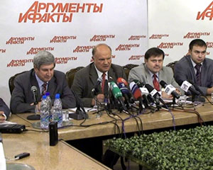 В Пресс-центре еженедельника «Аргументы и факты» в среду, 29 августа состоялась пресс-конференция Председателя ЦК КПРФ Г.А.Зюганова на тему: "КПРФ и выборы в Госдуму: подготовка партии к выборам, расклад политических сил, настроения избирателей». Во встрече с прессой приняли также участие первый заместитель Председателя ЦК КПРФ, депутат Государственной Думы И.И. Мельников, руководитель юридической службы ЦК КПРФ, секретарь ЦК КПРФ В.Г. Соловьев, секретарь ЦК КПРФ, первый секретарь СКМ РФ Ю.В. Афонин.