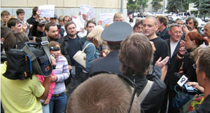 К 15 часам около здания мэрии собрались представители инициативных групп из Митино, Бутово, Теплого стана, Жулебино, с улиц Маршала Бирюзова, Косыгина, Дмитровского проезда и других. Их пришли поддержать представители левых организаций и депутаты Мосгордумы С.В. Никитин (КПРФ) и С.С. Митрохин (Яблоко).