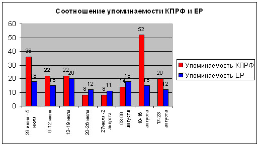 Также визит Г. А. Зюганова позволил партии существенно обойти по количеству упоминаний «Единую Россию». В «пиковую» неделю количество упоминаний КПРФ (52 публикации и сюжета) превысил в 3,5 раза количество упоминаний о «Единой России», в том числе в эту неделю вышло 5 сюжетов по телевидению (о «Единой России» — 3 сюжета).
