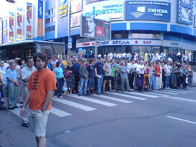 Всех задержанных пришлось выпустить. Но после этого сотрудники милиции в свою очередь взяли наиболее активных участников акции в кольцо и блокировали проход во дворы и к метро.