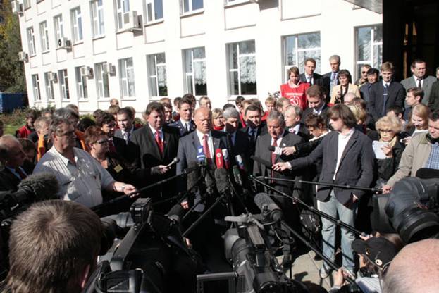 В перерыве работы съезда Председатель ЦК КПРФ Г.А.Зюганов провел пресс-конференцию для представителей СМИ, аккредитованных на XII внеочередном съезде