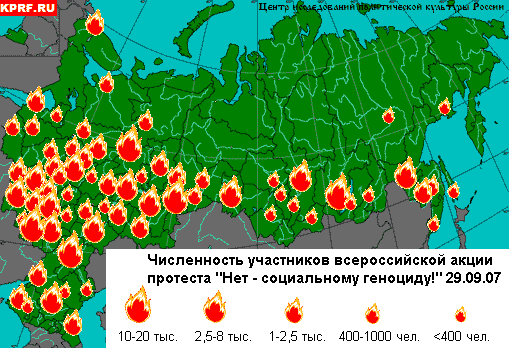 157 тысяч протестующих в 67 субъектах Российской Федерации поддержали требования Всероссийской акции КПРФ «Нет - социальному геноциду!», которая прошла 29 сентября Федерации