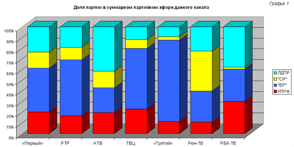 КПРФ. Максимальную долю эфирного времени КПРФ получила в первый предвыборный месяц на РБК-ТВ и на ТВЦ (30 и 23%). Минимальную – на «Третьем» канале и Рен-ТВ (по 11%).