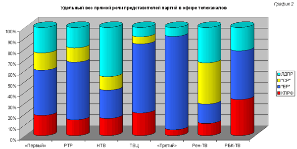 Представляет интерес распределение телеэфира по партиям на различных телеканалах (табл.2).