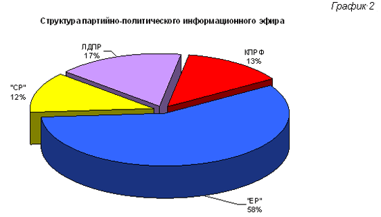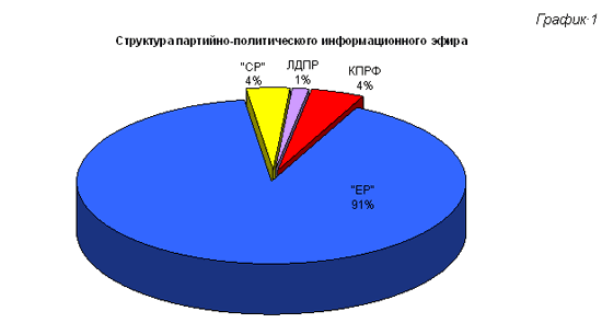 «Единая Россия». Режим наибольшего благоприятствования «ЕР» получила на «Первом» канале и РБК-ТВ. Здесь эта партия имела 100% всего информационно-политического телеэфира.