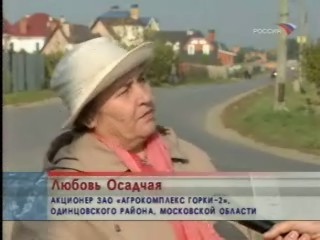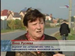 Анна Русеева (акционер ЗАО "Агрокомплекс Горки-2" Одинцовского района, Московской области): Нас соберет Черкасов, наш бывший директор и все мы не умеем, мы дураки, а кто ж ордена зарабатывал, кто добивался всего? Так что у нас все это выдернули из рук. Вот конкретно по мне, например, у меня у мужа был пай, муж умер, и у меня пай, мы вдвоем работали. Мои подписи просто подделали, а за него за мертвого все это подделали.