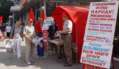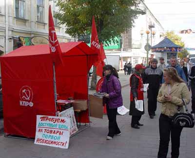 В Саратове проходит серия пикетов, организованная районными комитетами КПРФ, против безудержного роста цен на продовольствие и товары первой необходимости, против «социального террора» и дальнейшего снижения жизненного уровня трудящихся.
